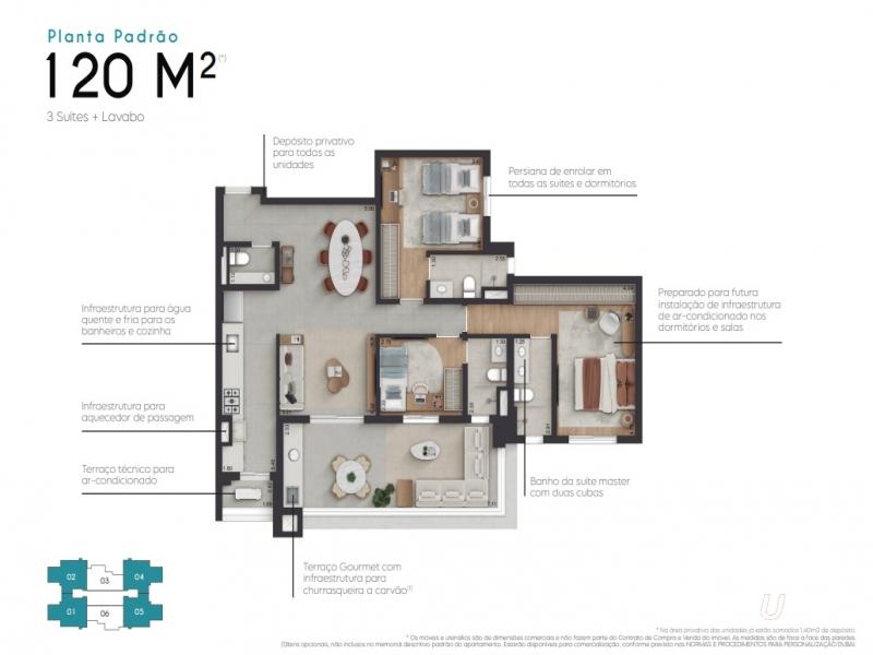 Apartamento decorado de 120 m² no Condomínio Edition por Dubai, localizado no Bela Vista, com living ampliado e integrado, proporcionando amplitude e excelente iluminação natural. Possui terraço gourmet com infraestrutura para churrasqueira a carvão, cozinha com infraestrutura para água quente e fria e aquecedor de passagem, além de terraço técnico para ar-condicionado. Na área íntima, são 2 suítes, sendo a master com duas cubas no banheiro, além de lavabo e depósito privativo, totalizando 3 banheiros. Dormitórios com persiana de enrolar e infraestrutura para ar-condicionado garantem ainda mais conforto no dia a dia.
