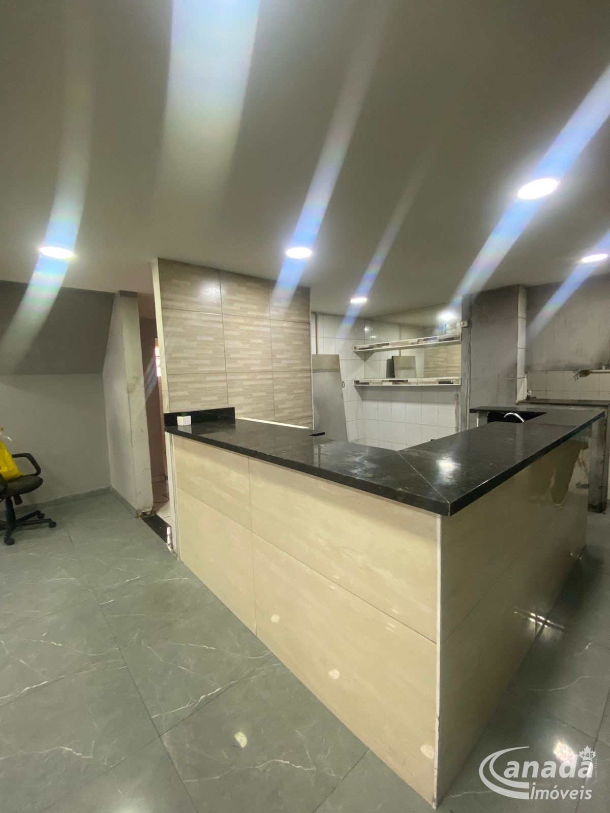 Exatamente salão comercial composto por 180 metros com pavimento térreo, possui bancada, cozinha estruturada com tubulação de gás encanado, 1 depósito, 2 banheiros feminino e outro masculino.