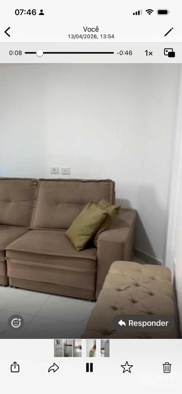 lindo apto semi mobiliado, com 2 dormitórios com planejados, cozinha com planejados, fogão, lavanderia com divisória de vidro, sala com sofá, aparador